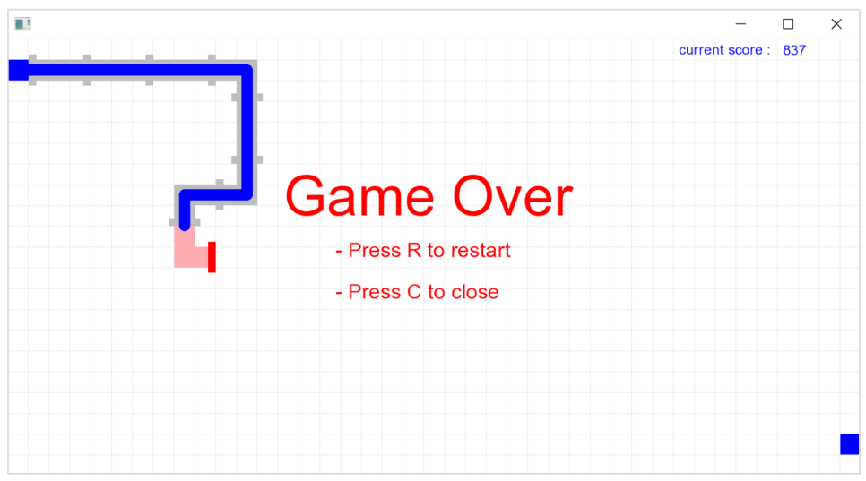 >> 예를들어 게임을 표시하는 화면의 크기가 10*10이라고 했을 때, 이동한 그리드의 좌표가(10,10)을 넘는다면 화면의 경계를 넘어간 것 : 게임오버 처리된다.