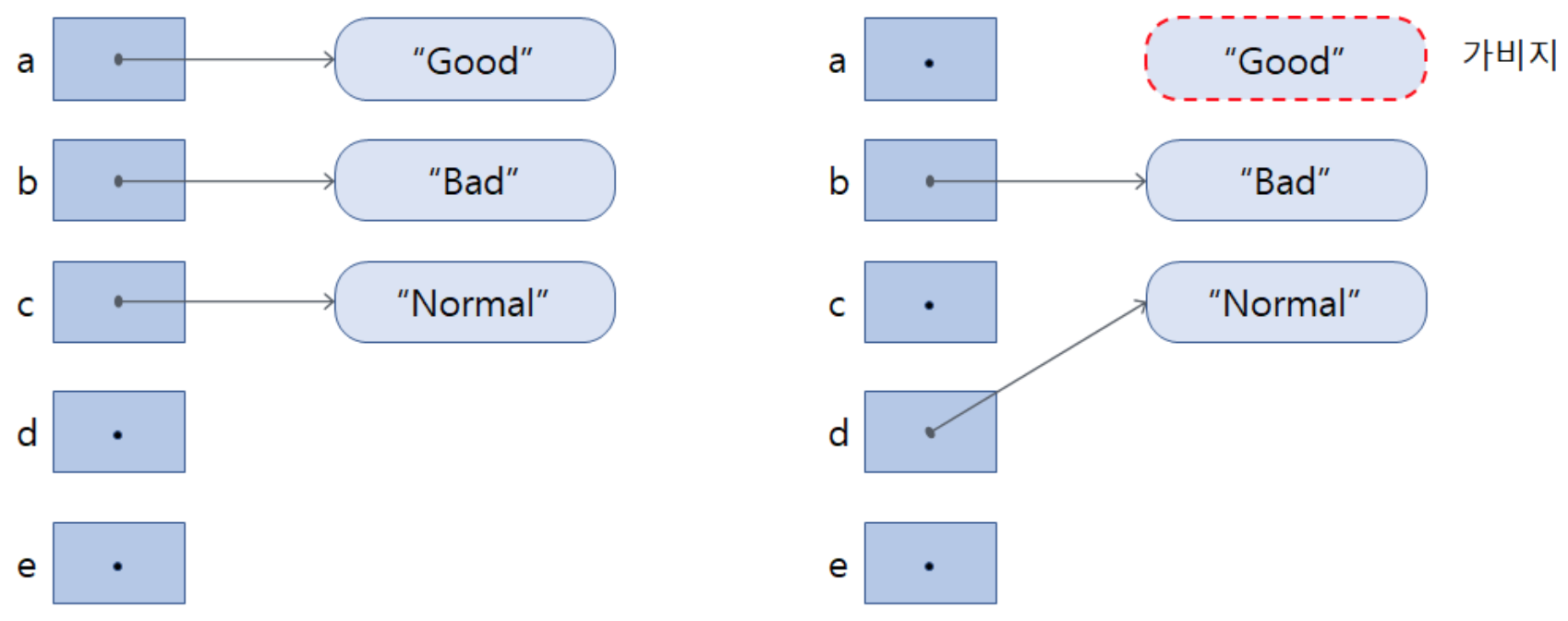 • Heap 영역에는 존재하지만 Stack영역에서 해당 객체를 가리키는 주소값이 없는 객체를 ‘참조되지 않는