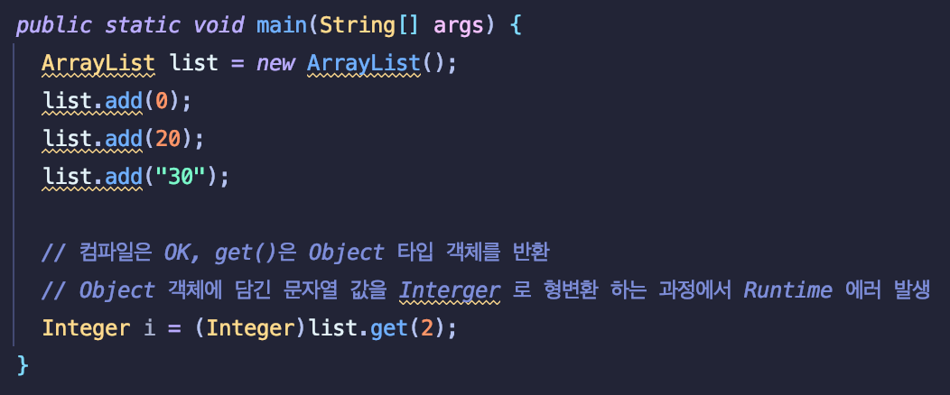 - ClassCastException 발생 걱정은 하지 않아도 된다.