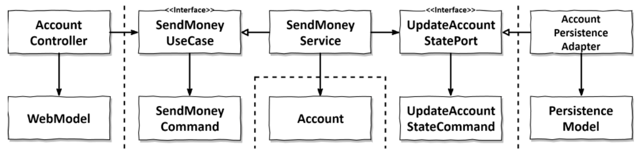 계층 간 통신에서 도메인 모델을 사용하는 대신 그림의 SendMoneyCommand(SendMoneyUseCase의 입력 모델로 사용된다) 처럼