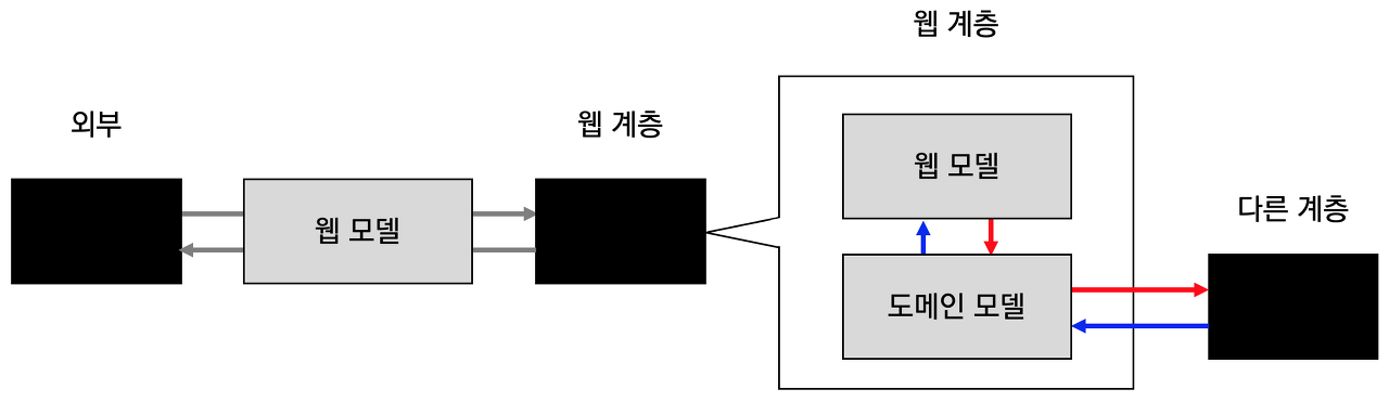 한 계층이 다른 계층으로부터 객체를 받으면 해당 계층에서 이용할 수 있는 모델로 매핑하면 된다.