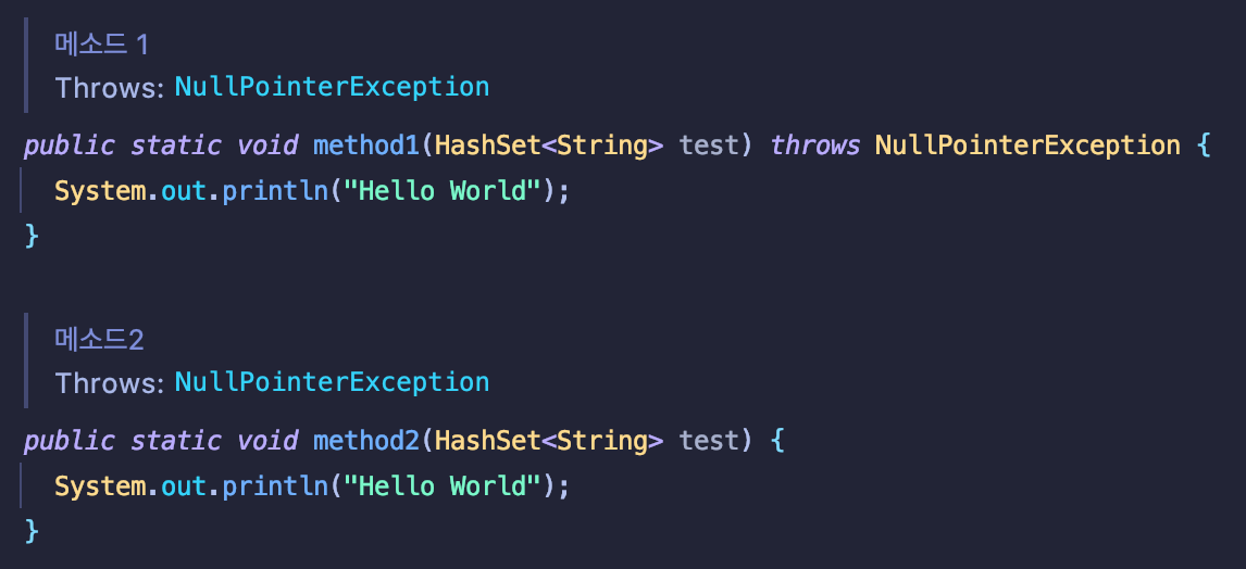 | [Effective Java] ITEM74 : 메서드가 던지는 모든 예외를 문서화하라 (0) | 2022.11.06 |