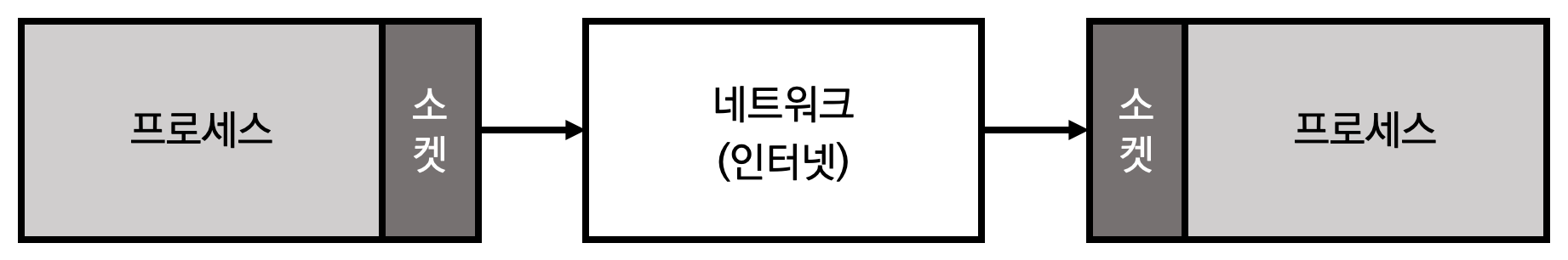 이 때 두 프로세스간의 메시지는 인터넷, 즉 네트워크를 통해 움직이며, 프로세스는 소켓(socket)을 통해 네트워크로 메시지를 보내거나 받는다.