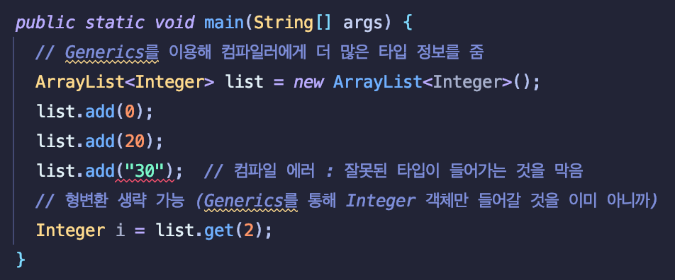 - ClassCastException 발생 걱정은 하지 않아도 된다.