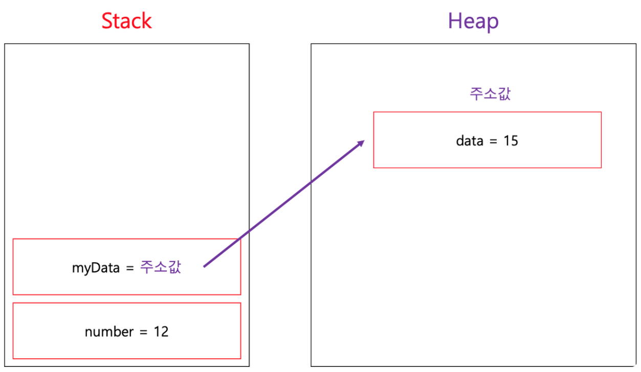 Stack에는 해당 Heap 공간을 가리키는 변수가 저장된다.