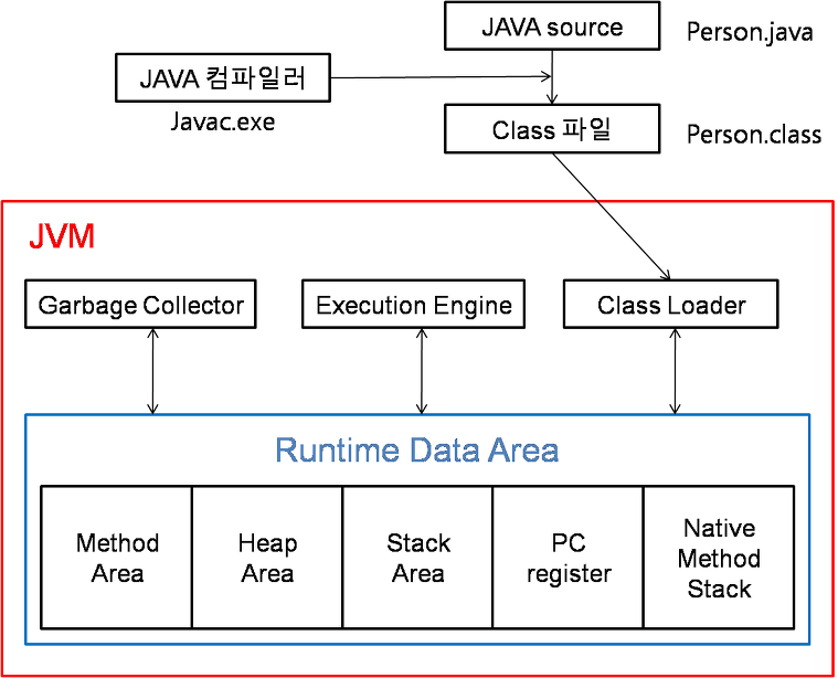 ◦ 컴파일 결과로 만들어진 .class 바이트코드 파일을 읽어들여 메모리에 배치